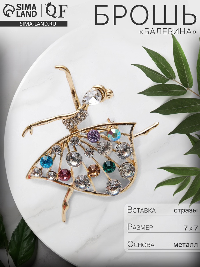 - Качество материалов: металлическая основа с золотой фурнитурой и вставками из страз гарантируют блеск и стойкость к износу.