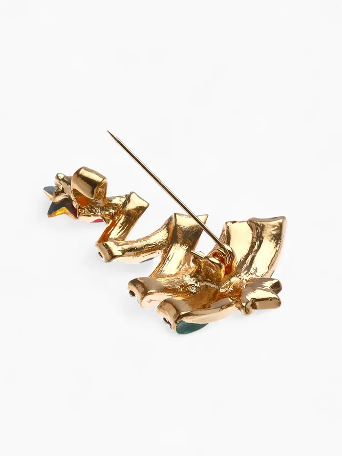 Брошь «Ёлка» серпантин, загадай желание, цветная в золоте — Характеристики