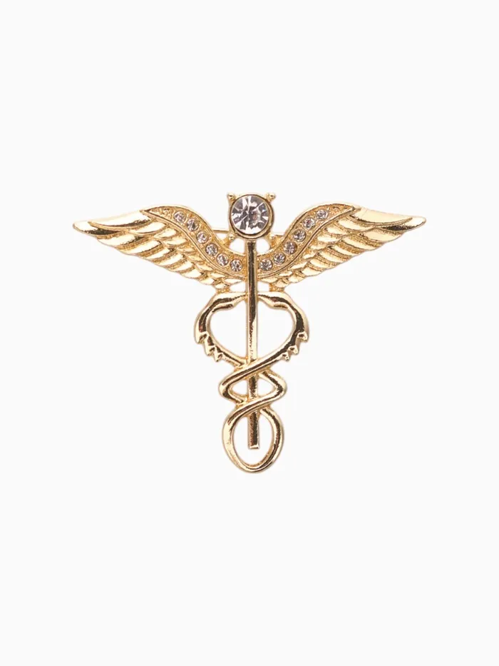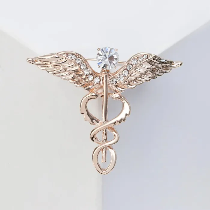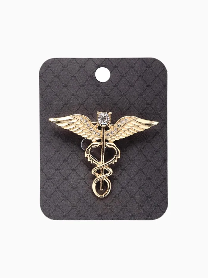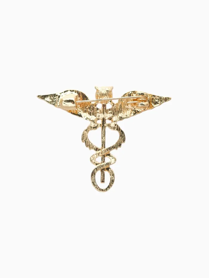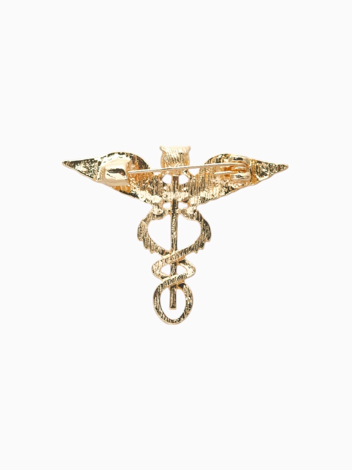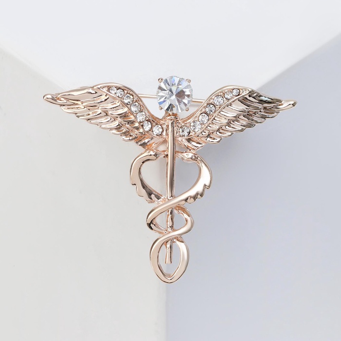 Брошь «Кадуцей», цвет белый в золоте — Характеристики
