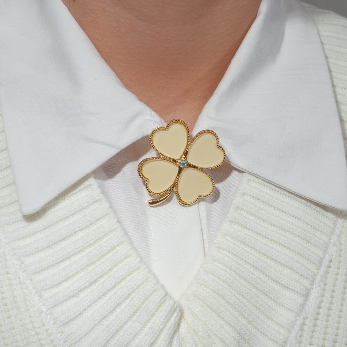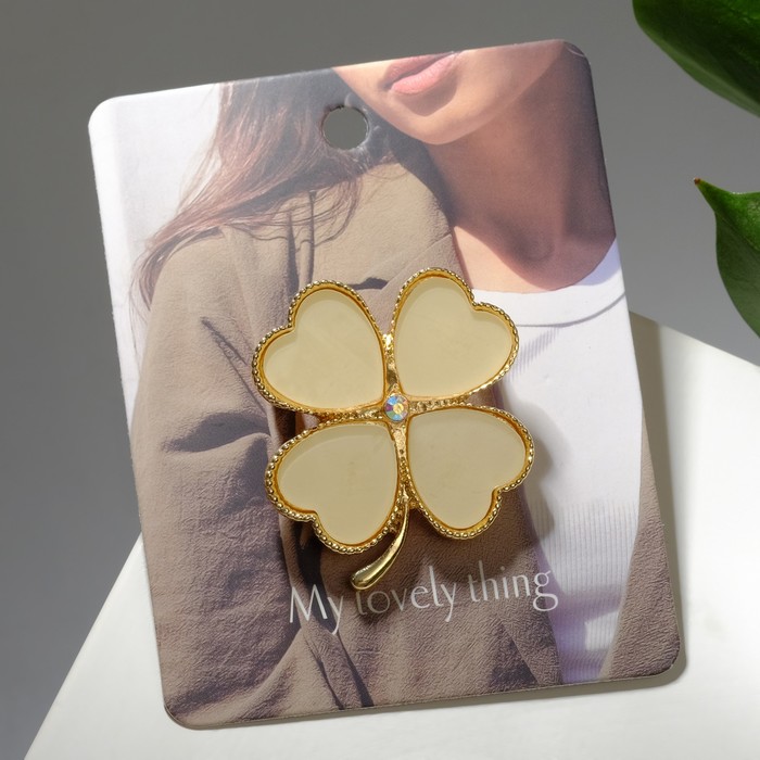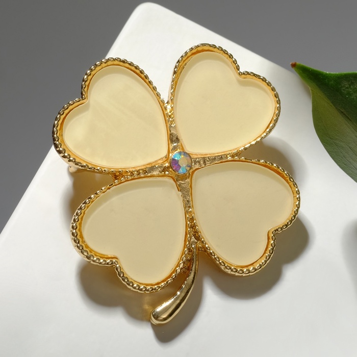 Брошь «Клевер» крупный, цвет бежевый в золоте — Характеристики