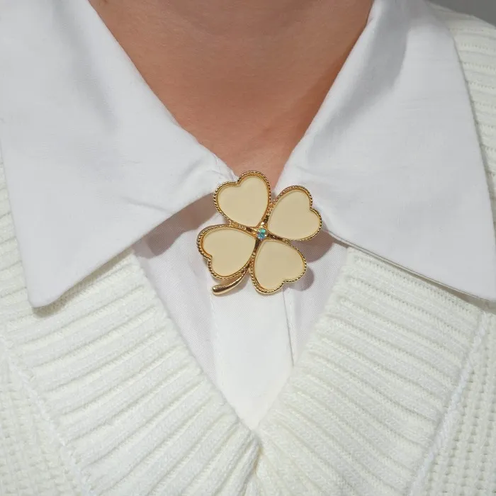 - Символ удачи: клеверный мотив ассоциируется с позитивом и благополучием, что делает эту брошь особенно значимой.