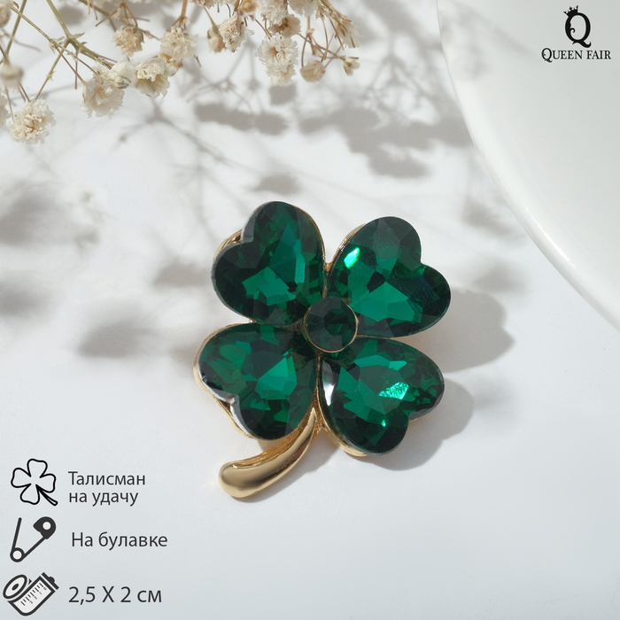 Изысканная брошь с изображением клевера в тёмно-зелёных оттенках и золотистой фурнитуре — это воплощение элегантности и природной свежести в одном аксессуаре. Компактный размер в 2,5 см позволяет легко дополнить любой образ, придавая ему особый шарм и утончённость.