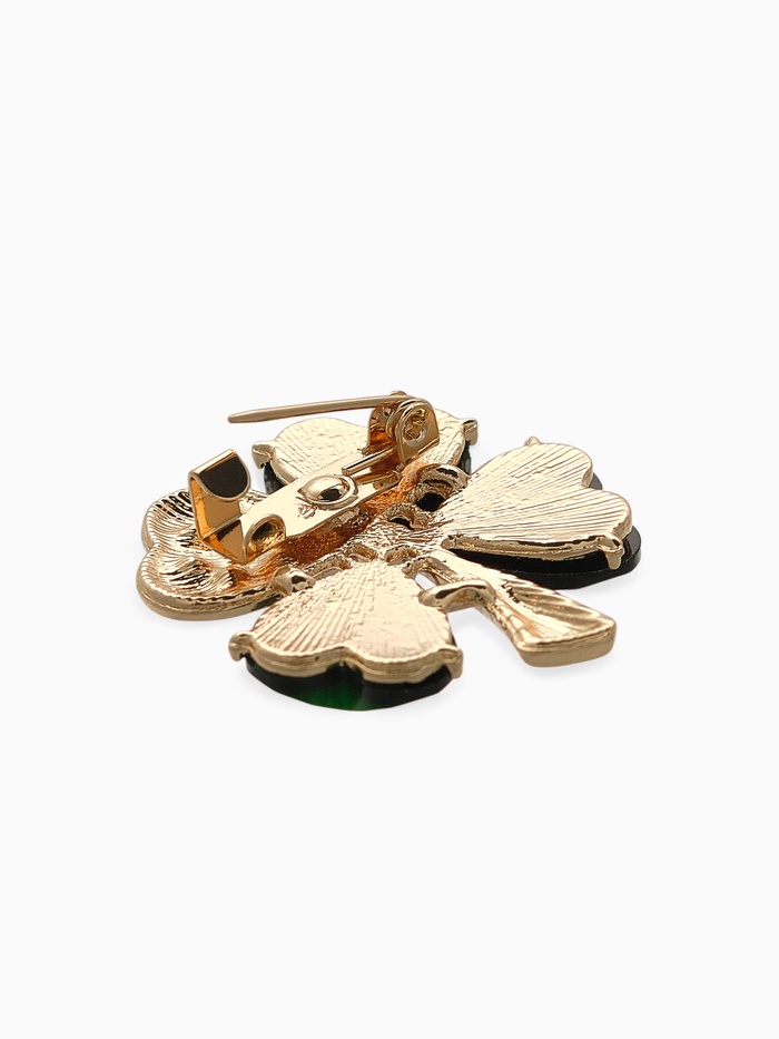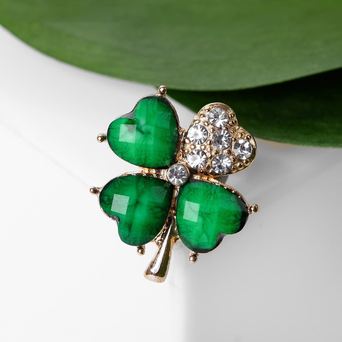 Брошь «Клевер», цвет бело-зелёный в золоте (неделимая фасовка 12 шт., цена за шт.) — Характеристики
