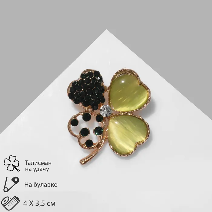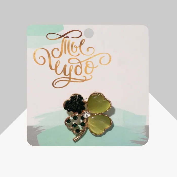 Брошь «Клевер», цвет зелёный в золоте — Характеристики
