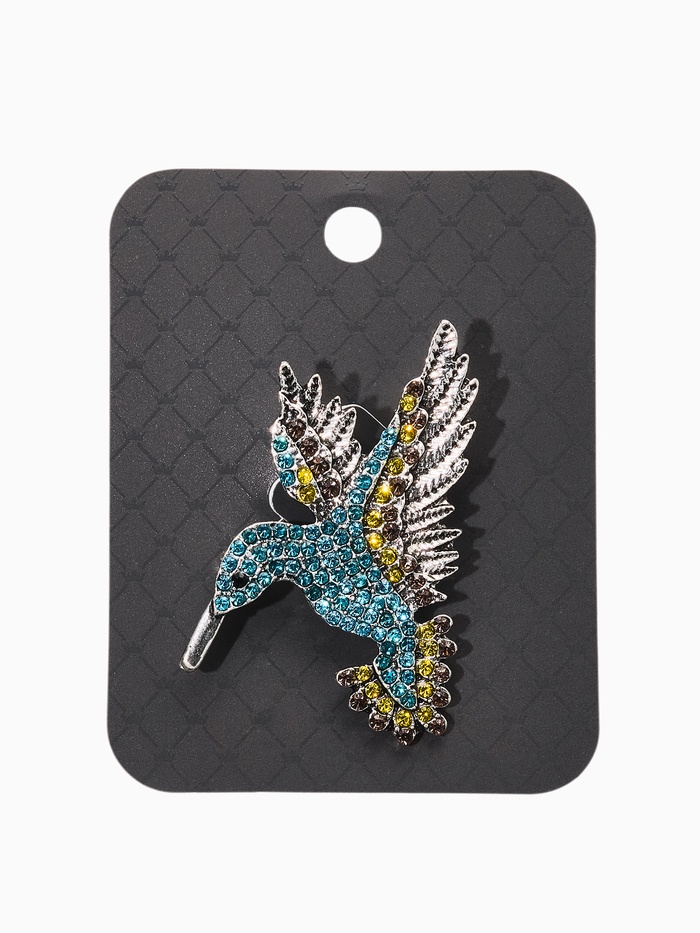 Небольшая брошь с изображением птицы калибри украсит даже самый простой образ, добавив ему легкости и оригинальности. Этот аксессуар выполнен в нежных голубых оттенках, символизирующих свободу и спокойствие. Миниатюрная птица словно парит над вами, привнося особую воздушность и романтизм в повседневный образ.