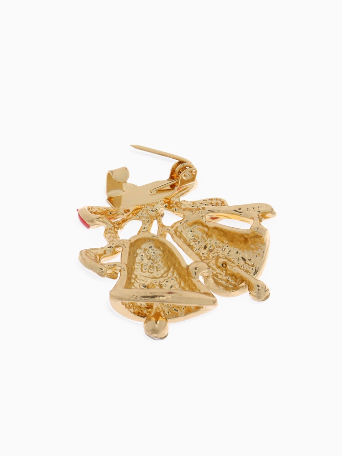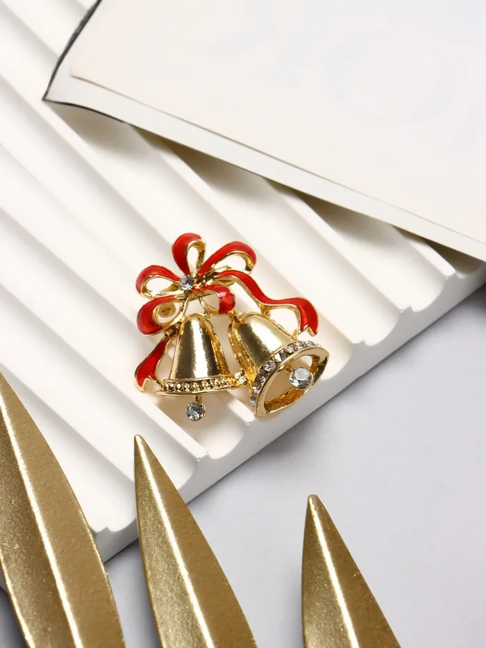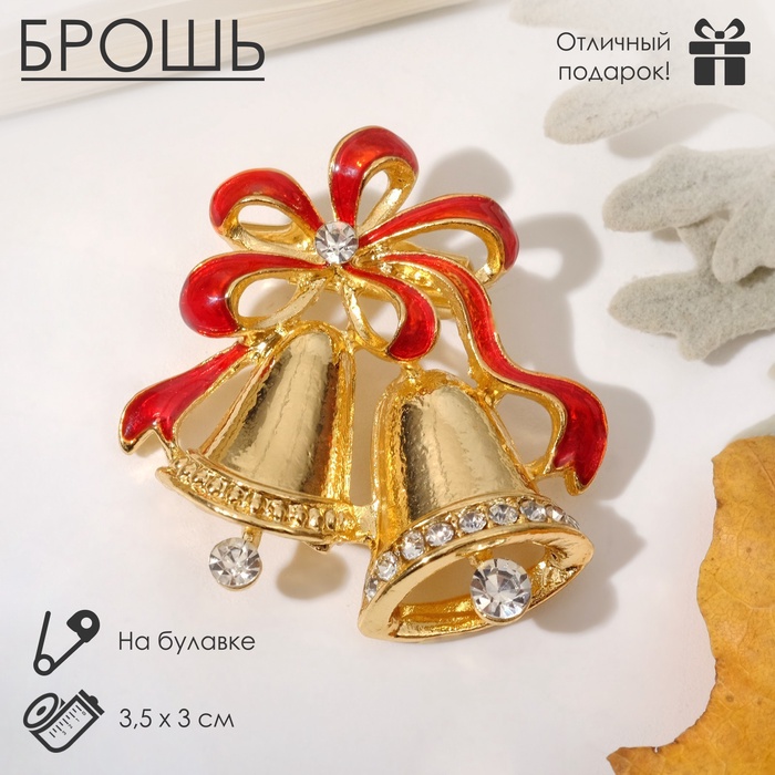 Брошь в форме колокольчика с изящной лентой сочетает яркий красный цвет с золотистой фурнитурой, создавая акцент, который подчёркивает индивидуальность и добавляет нотку праздничного настроения. Длина 3,5 см делает её компактной и удобной для ношения на одежде, идеально подходящей для тех, кто ценит минималистичные, но выразительные детали.