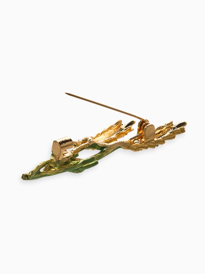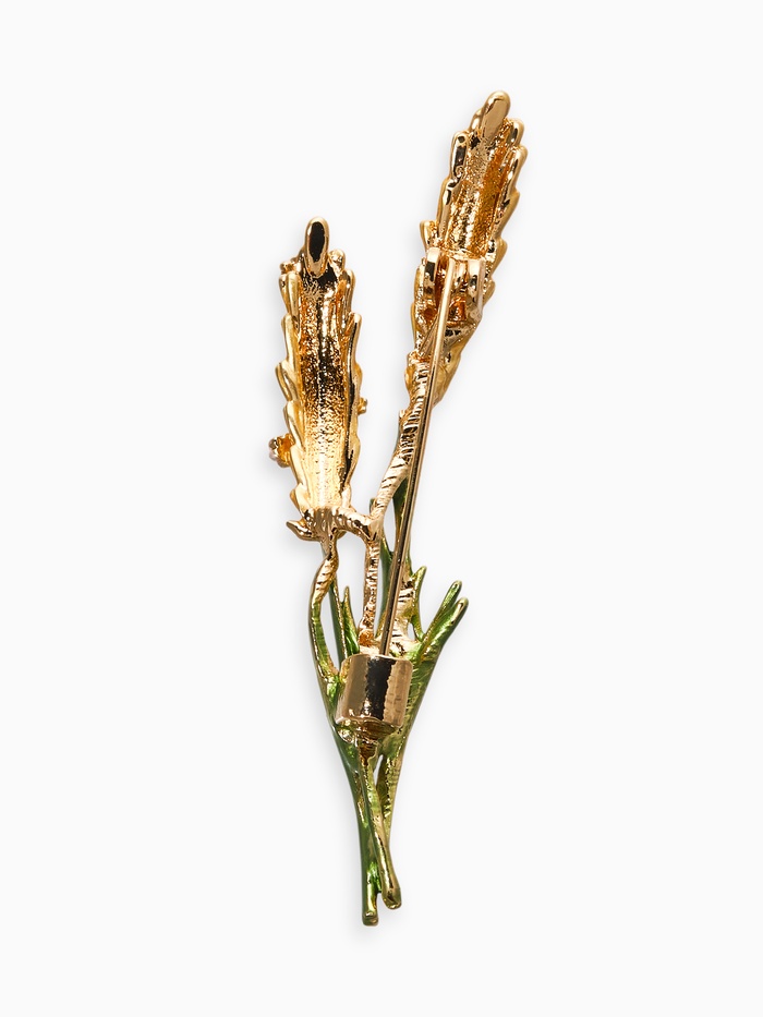 Эта изящная брошка станет прекрасным дополнением любого женского образа. Созданная в форме золотых колосьев пшеницы, украшенных зеленовато-жёлтой эмалью, она символизирует плодородие природы и женственность. Размер аксессуара компактный — всего 6 сантиметров длиной, что позволяет носить её каждый день с удовольствием и комфортом.