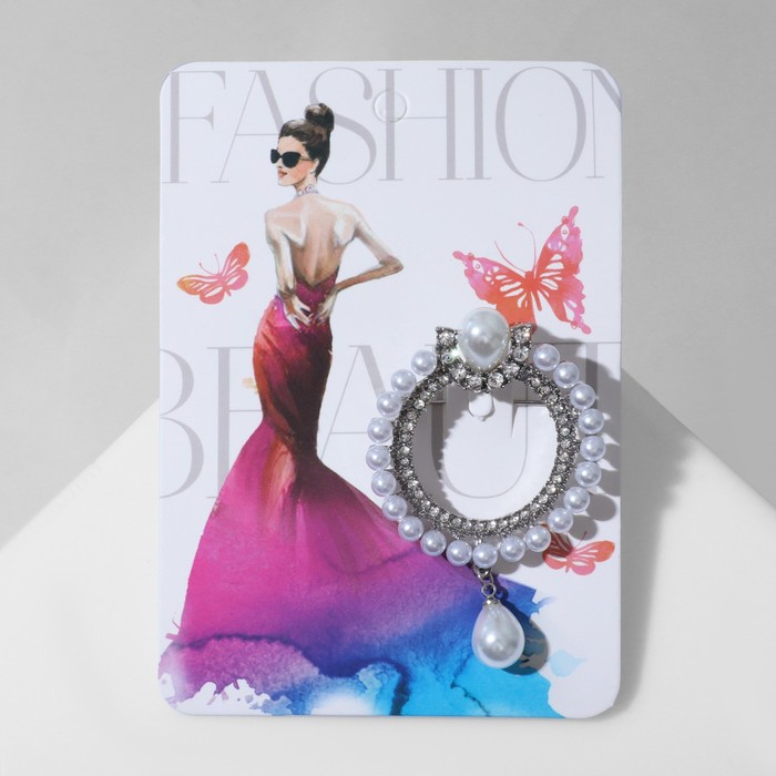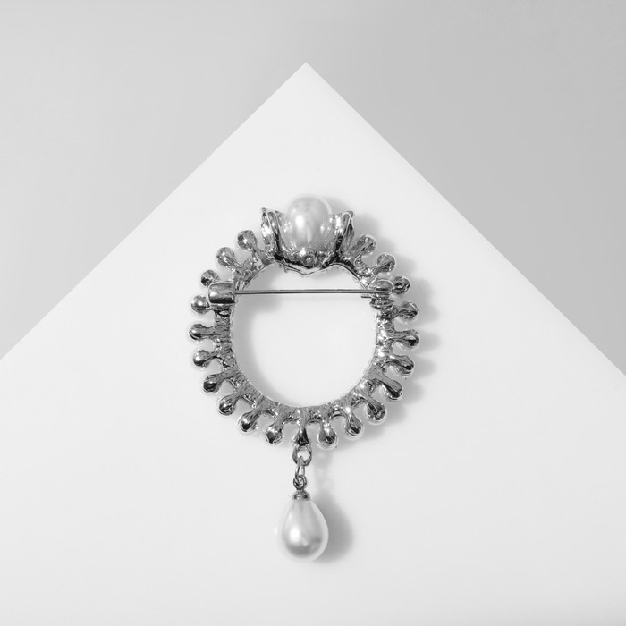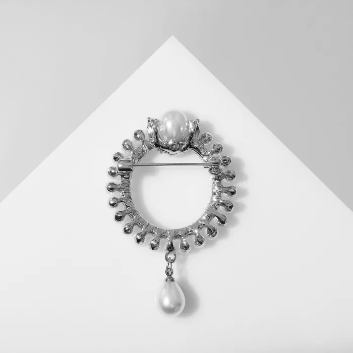 Брошь «Кольцо жемчужное» с подвеской, цвет белый в серебре — Характеристики
