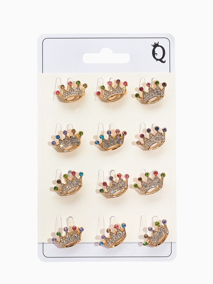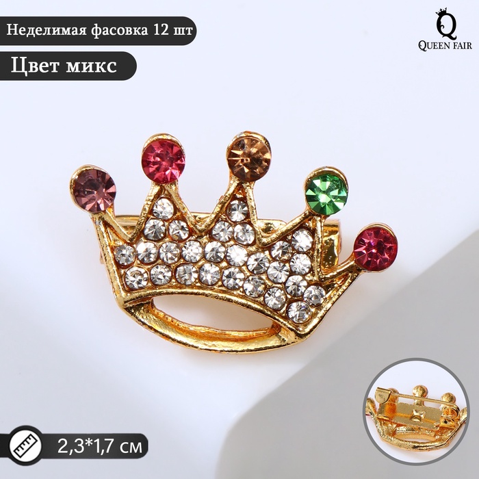 Брошь «Корона» радужная, цветная в жёлтом золоте (неделимая фасовка 12 шт., цена за шт.) — Характеристики