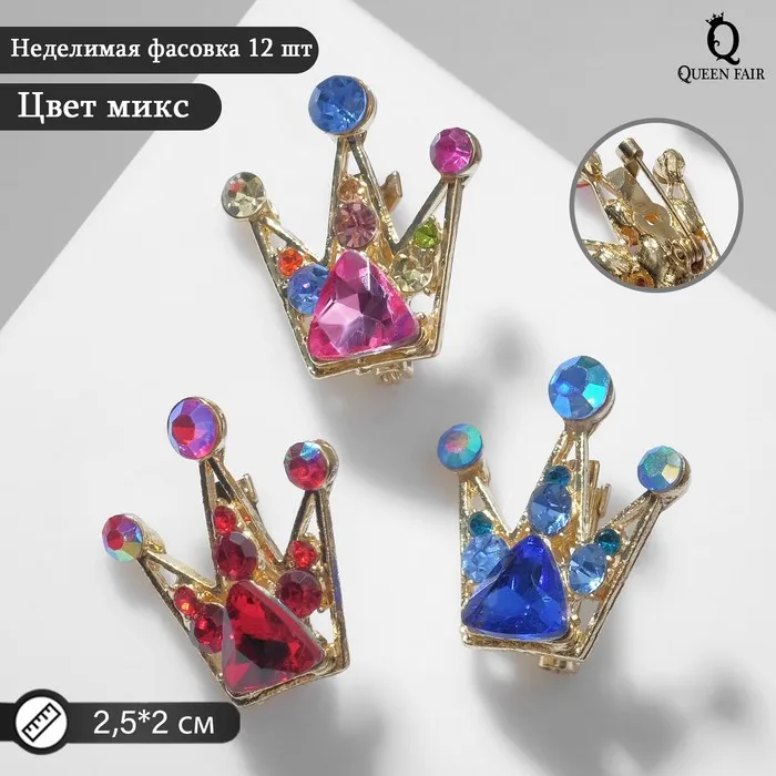Брошь «Корона» с тремя лучами, МИКС в золоте (неделимая фасовка 12 шт., цена за шт.) — Характеристики
