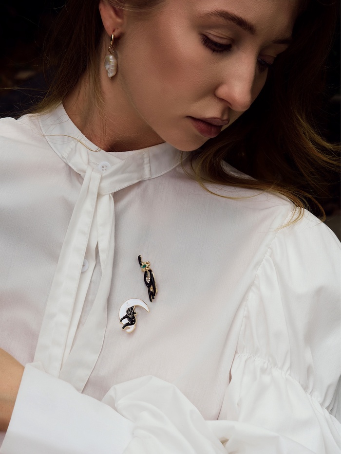 Эта брошь в стиле «кошечка» сочетает в себе изящность и оригинальность, делая её привлекательным украшением для женщин и девочек. Ее миниатюрный размер — 4,3 см — позволяет аккуратно подчеркнуть образ, добавляя нотки грации и утонченности. Украшенная стразами и эмалью, она привлекает внимание своей деталировкой и яркостью, а золотая фурнитура придает изделию особый шарм и статусность.