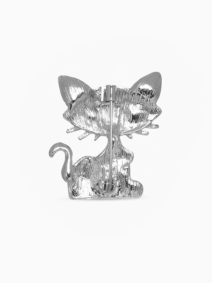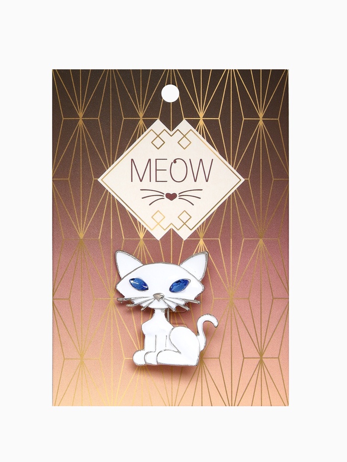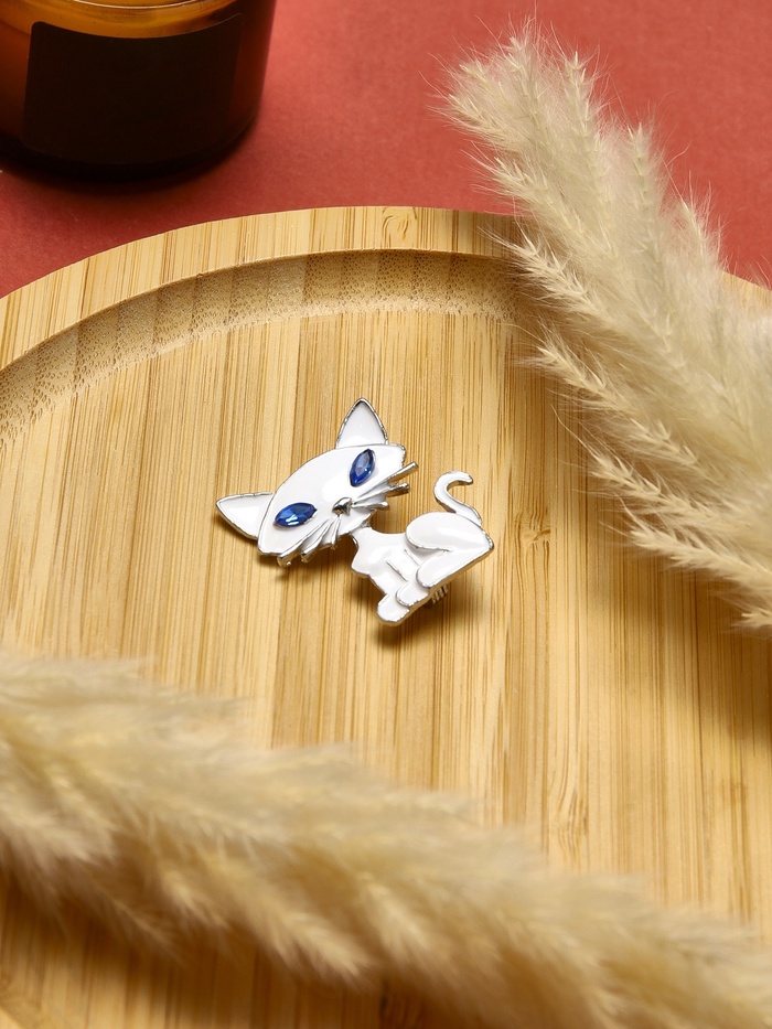 Брошь «Кошечка» хитрая, цвет бело-голубой в серебре — Характеристики