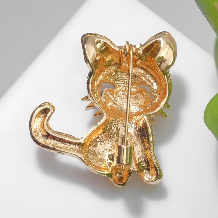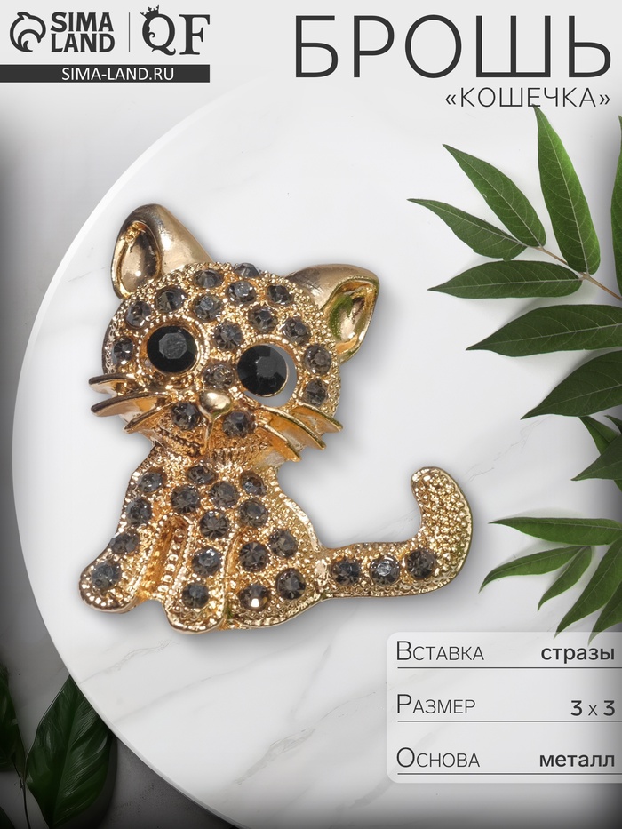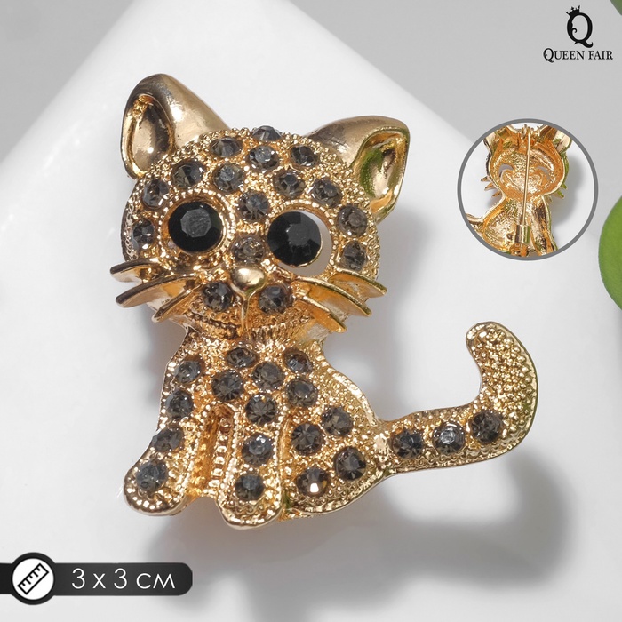 Брошь «Кошечка» очаровательная, чёрно-серая в золоте — Характеристики