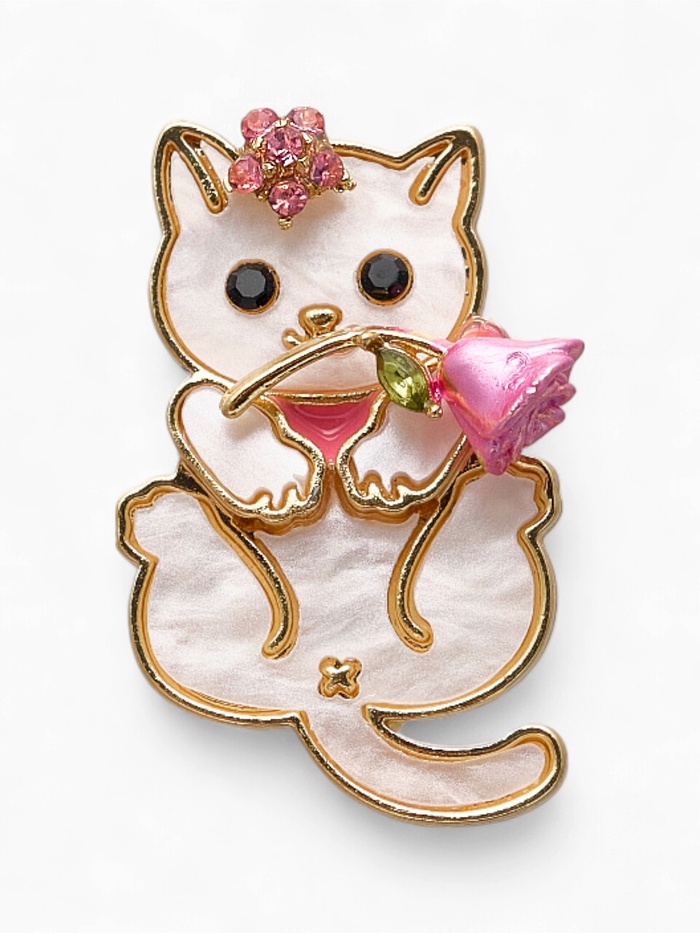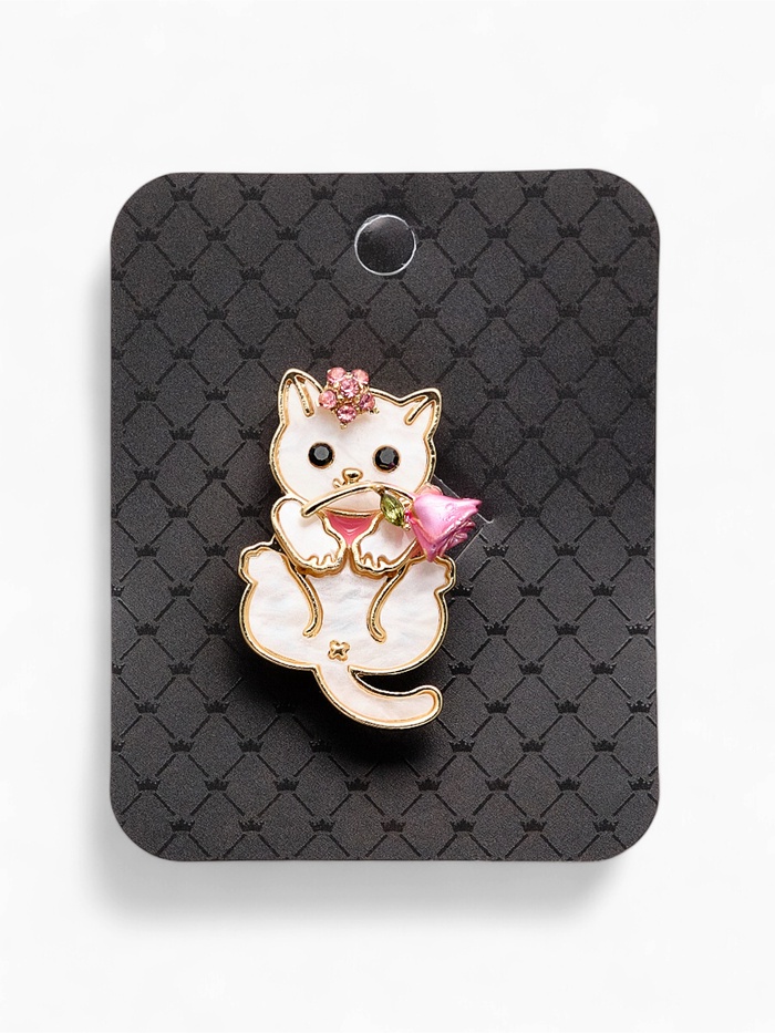 Эта брошь не просто аксессуар, а настоящий символ женственности и грации. Изображение кошечки, окружённой цветами, добавляет игривости и яркости, придавая вашему образу уникальный характер.
