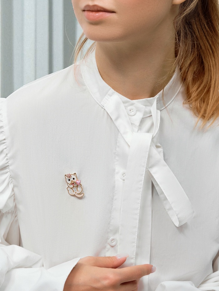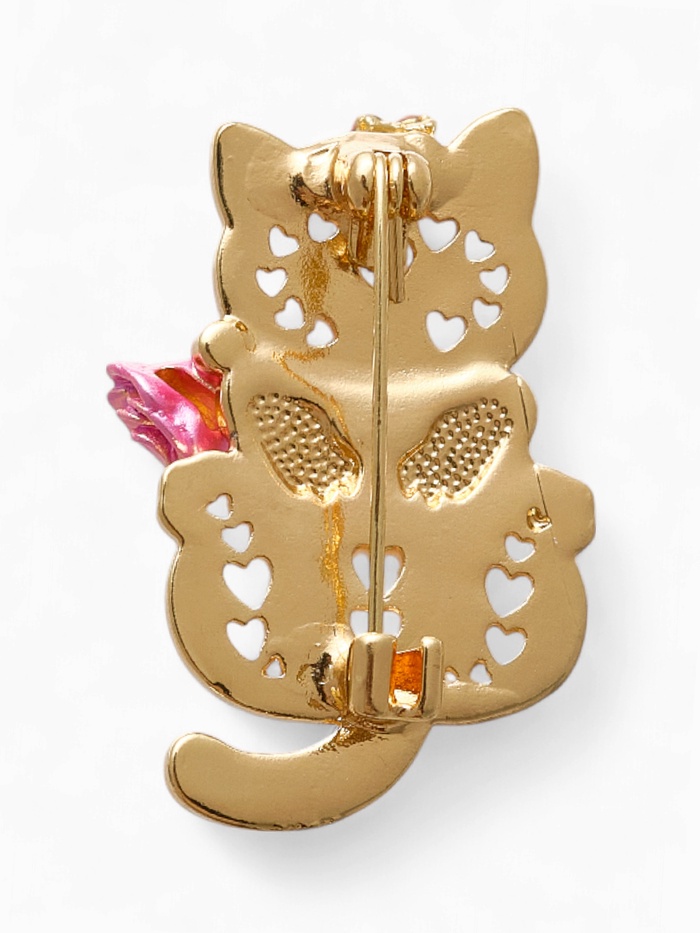 Брошь «Кошечка» с розой, белая, розовая в золоте — Характеристики