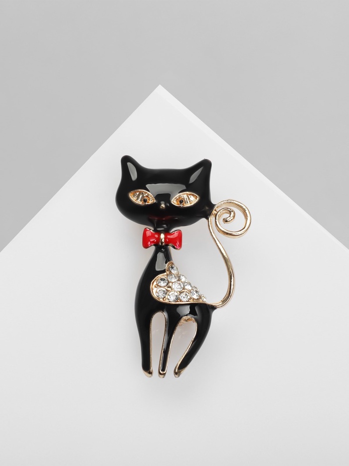 Брошь «Кошечка» с сердечком, цвет чёрный в золоте — Характеристики