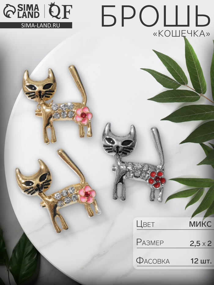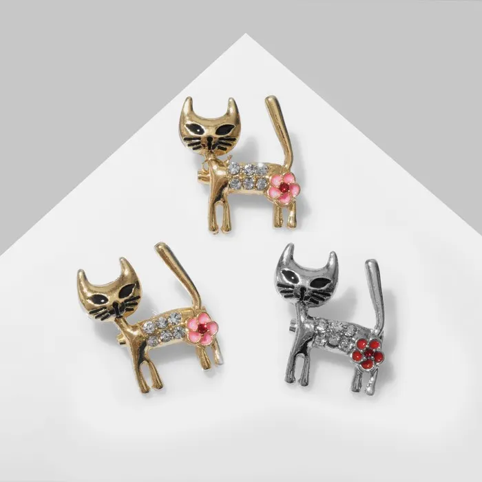 Брошь «Кошечка» с цветком, МИКС, (неделимая фасовка 12 шт., цена за шт.) — Характеристики