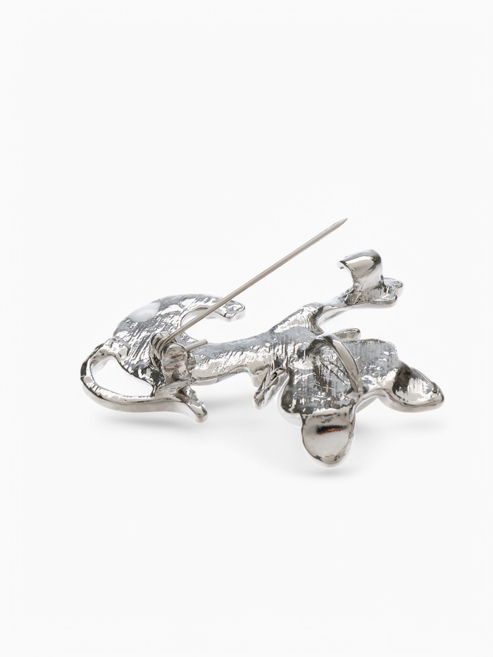 Металлическая основа с серебряным покрытием придаёт броши современный и стильный вид, а искусственные камни и эмаль в белом цвете создают эффект сияния и объёма. Благодаря качественным материалам изделие сохраняет привлекательность и прочность на протяжении долгого времени.