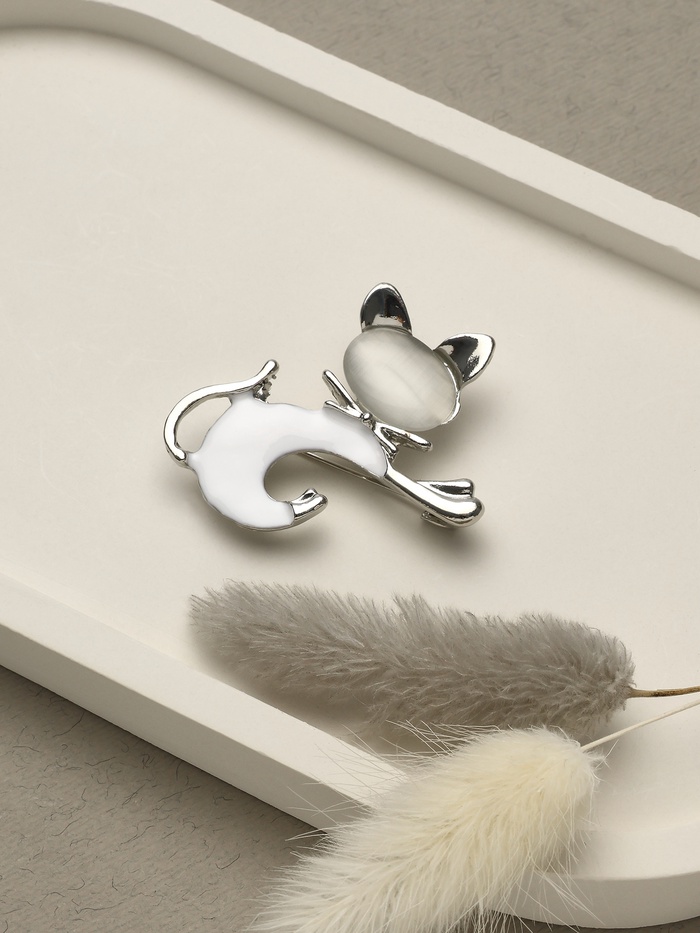 Брошь «Кошечка», цвет белый в серебре — Характеристики