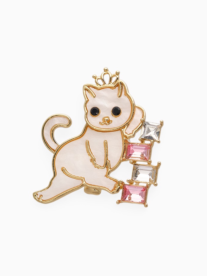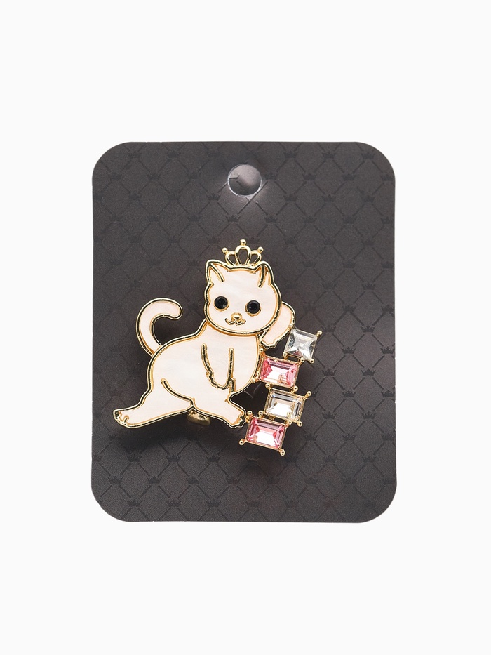 Брошь «Кошечка в короне», бело-розовая в золоте — Характеристики
