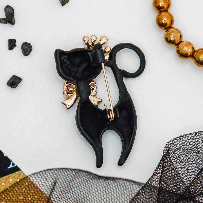 Брошь «Кошка грация», в короне, цвет матовый чёрный в золоте — Характеристики