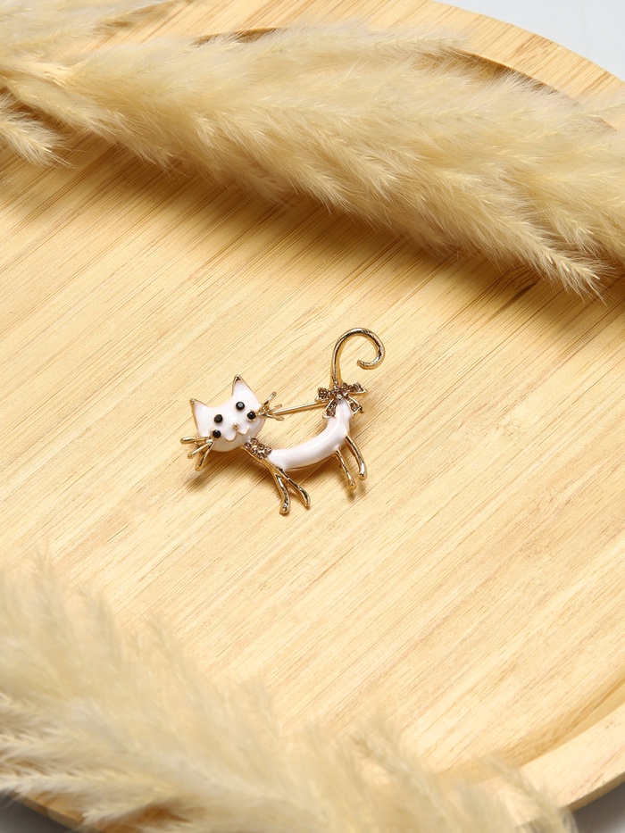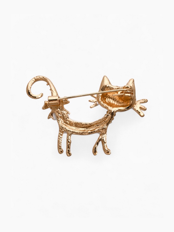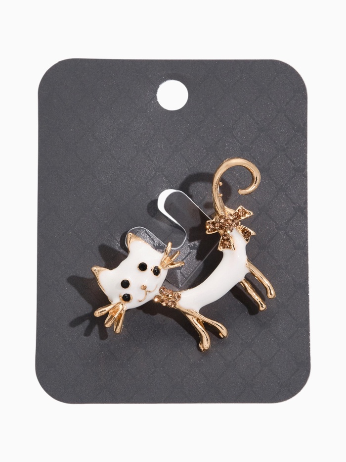 Очарование и игривость воплощены в этой милой броши в форме кокетливой кошки с бантом. Белоснежный цвет, дополненный кофейным золотом, придаёт изделию стильный и современный вид, который отлично подчеркнёт вашу индивидуальность и станет изюминкой любого наряда.