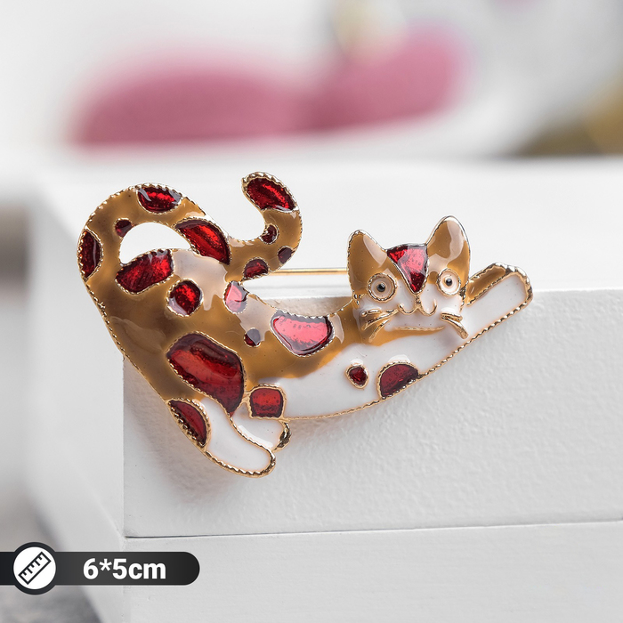 Очаровательная брошь в виде ленивой кошки — это не просто аксессуар, а настоящая находка для любителей оригинального дизайна. С длиной всего 6 см, она станет ярким акцентом в вашем образе, добавляя нотку игривости и уюта. Цветовая палитра, включающая коричневый, белый и красный, в сочетании с золотистой фурнитурой создаёт гармоничное и стильное впечатление.