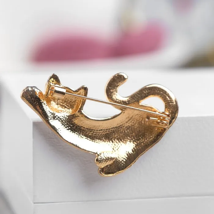 Брошь «Кошка» ленивица, цветная в золоте — Характеристики