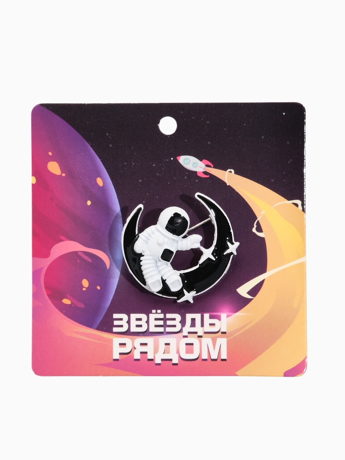 Брошь «Космонавт» на луне, цвет чёрно-белый — Характеристики