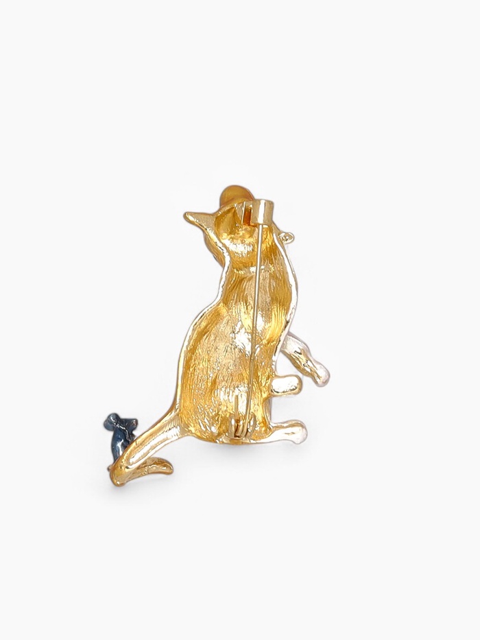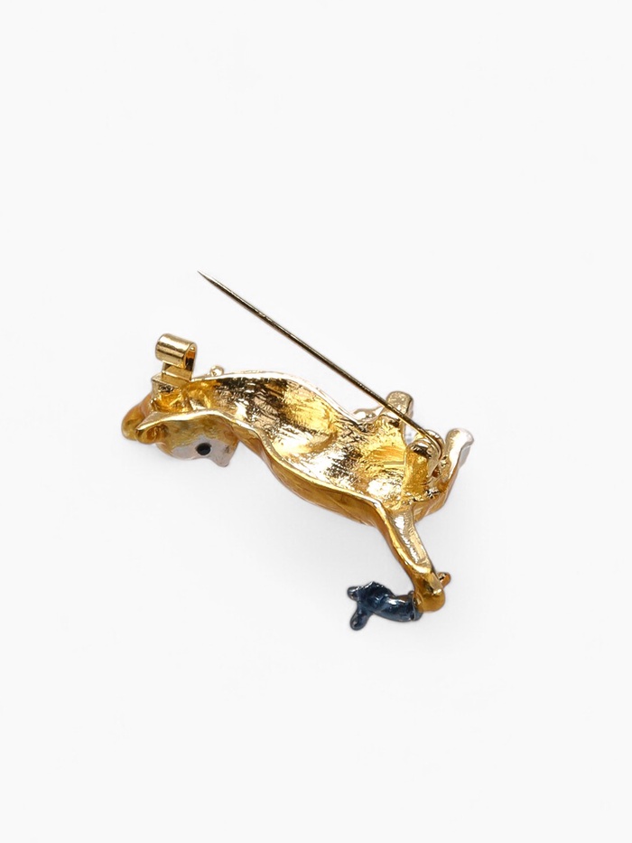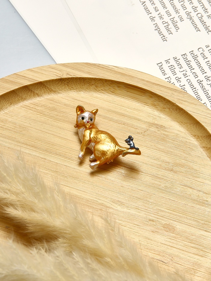 Брошь «Кот и мышь», оранжево-серая в золоте — Характеристики