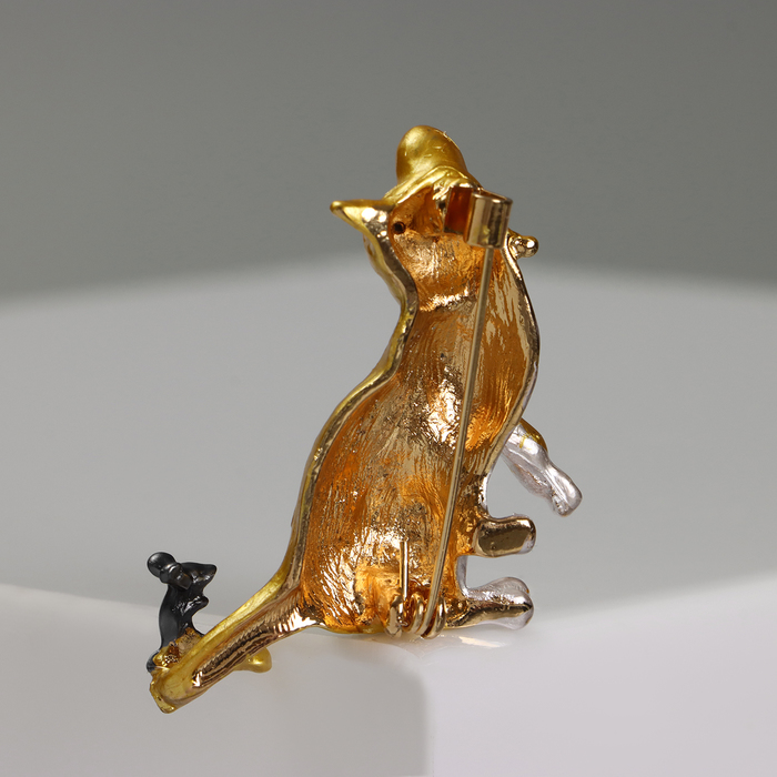 Брошь «Кот и мышь», цвет жёлто-серый в золоте — Характеристики