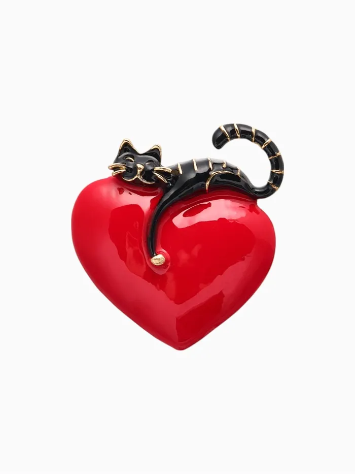 - Стильный и оригинальный дизайн: брошь в виде кота с сердцем станет отличным акцентом, который подчеркнёт вашу индивидуальность.