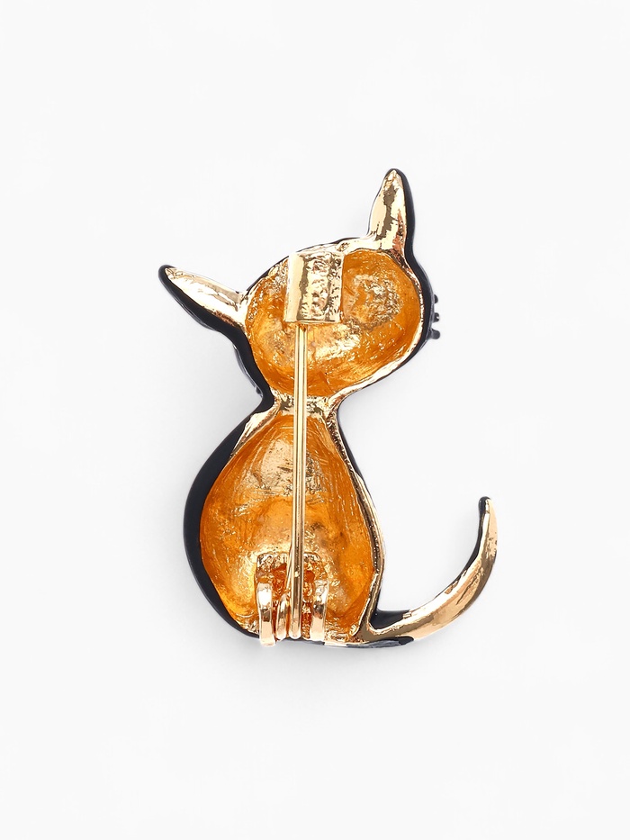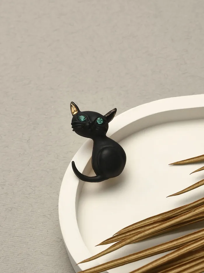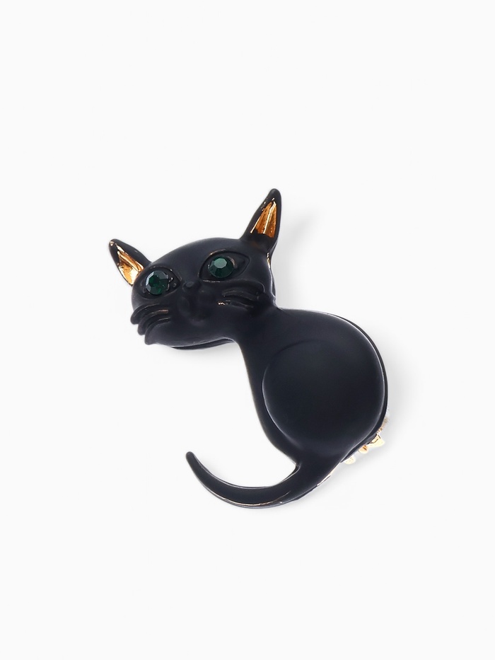 Игривый силуэт, блеск глаз и изящные линии — эта брошь в виде котёнка создана для тех, кто ценит стиль с характером. Глянцевый чёрный цвет в сочетании с золотистой фурнитурой придаёт украшению выразительность, а стразы добавляют лёгкое сияние, словно отражающее кошачью грацию. Компактная длина 3,5 см делает брошь универсальной — она одинаково хорошо смотрится на лацкане пиджака, воротнике блузы или даже на сумке.