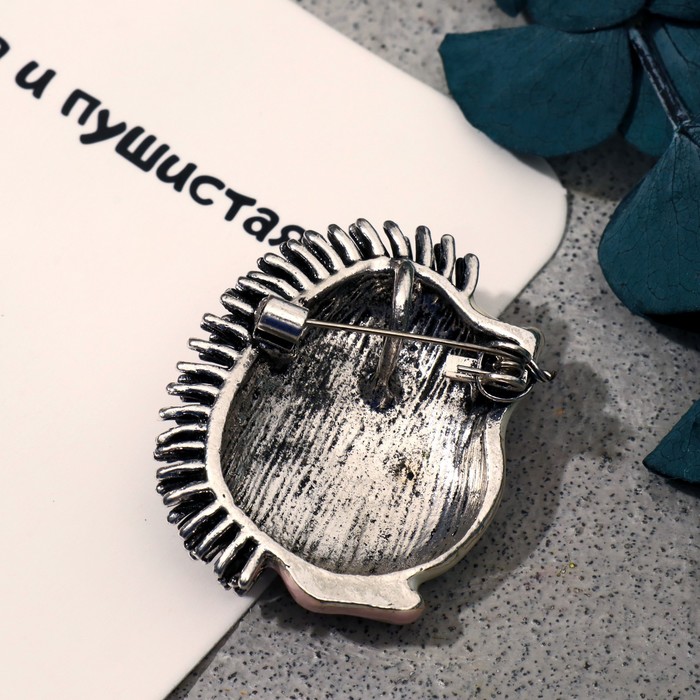 Брошь-кулон «Ёжик» мечтатель, цвет бело-розовый в чернёном в серебре — Характеристики