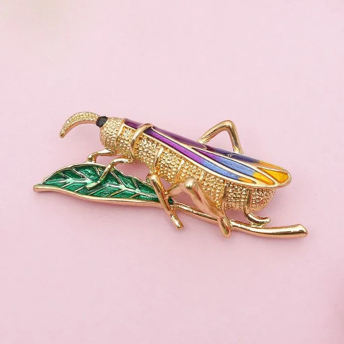 Изящная брошь в форме кузнечика — яркое украшение, которое привнесёт в образ нотку игривой свежести и оригинальности. Мастерски выполненная из металла с золотистым покрытием и украшенная разноцветной эмалью, она станет выразительным акцентом как для повседневного, так и для праздничного наряда.
