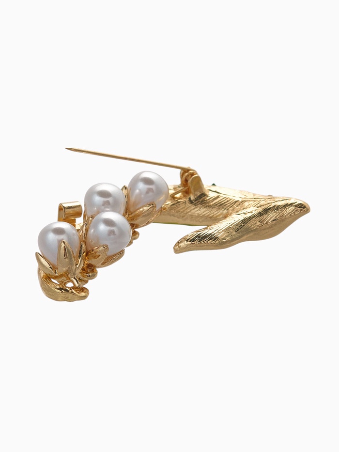 - Высококачественные материалы: металл с золотым покрытием, искусственный жемчуг и эмаль обеспечивают долговечность и привлекательный внешний вид.