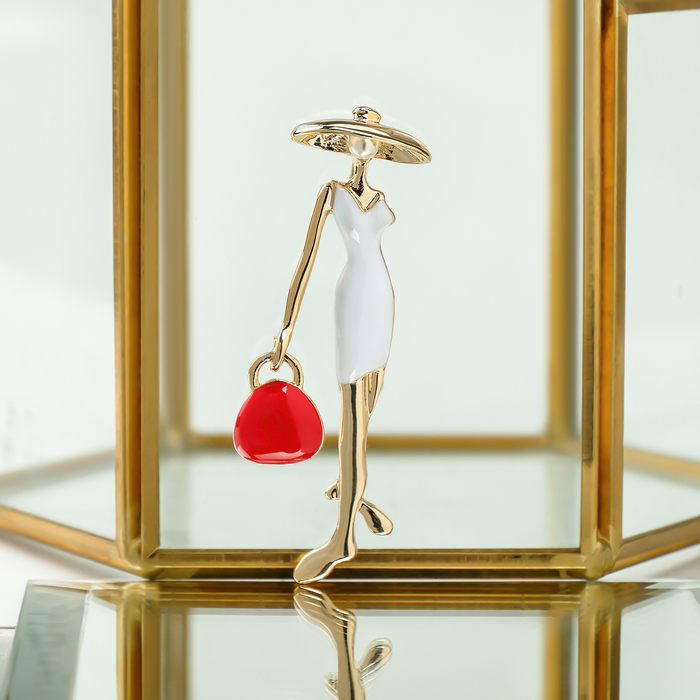 Брошь «Леди» с сумочкой, цвет красно-белый в золоте — Характеристики