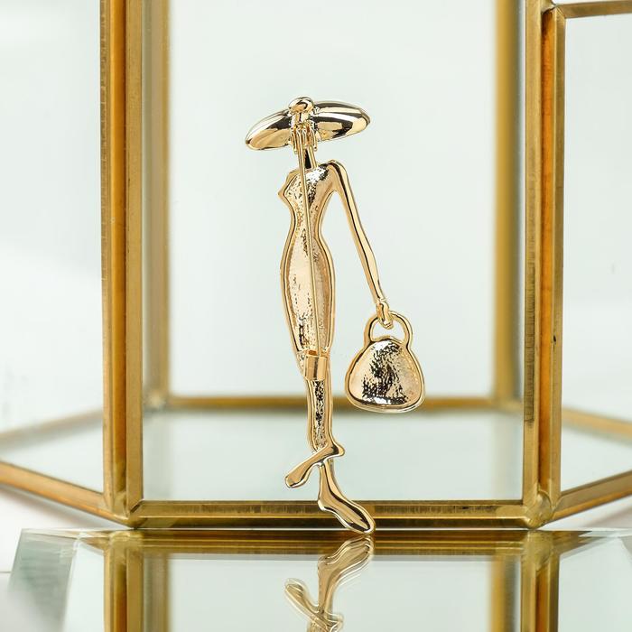 Брошь «Леди» с сумочкой, цвет красно-белый в золоте