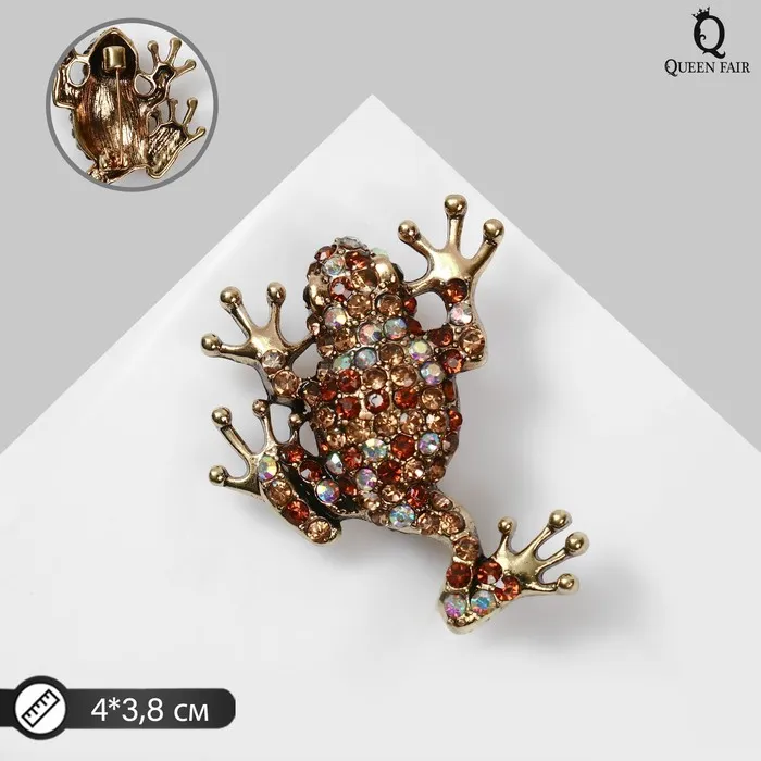 Брошь «Лягушка» шахматка, цвет радужно-коричневый в чернёном золоте — Характеристики