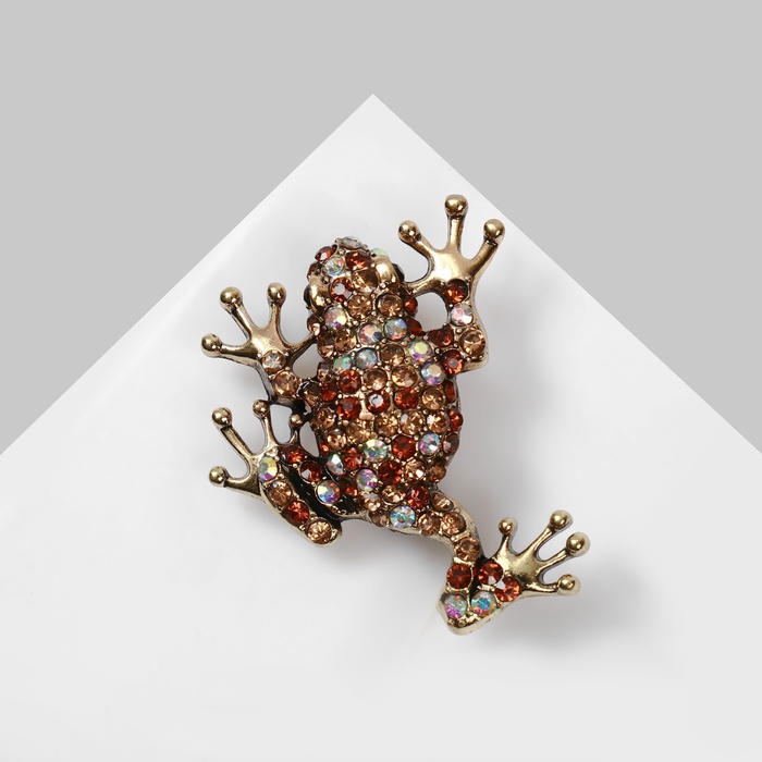 Изящная брошь с изображением лягушки — это настоящий арт-объект в мире аксессуаров. Радужно-коричневый оттенок металла в сочетании с чёрнёным золотом создаёт неповторимую игру цвета и света, придавая изделию глубину и живость. Такой аксессуар станет ярким акцентом и подчеркнёт утончённый вкус своей обладательницы.