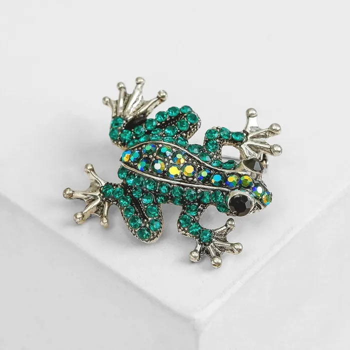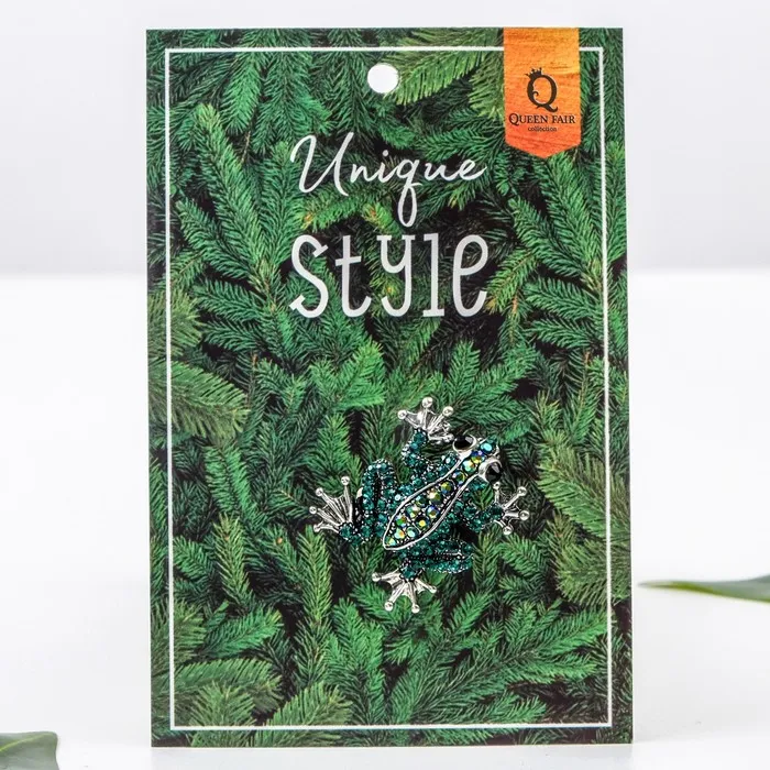 - Эффектный дизайн: сине-зелёные стразы создают живую игру цвета и света, делая брошь заметной и привлекательной.