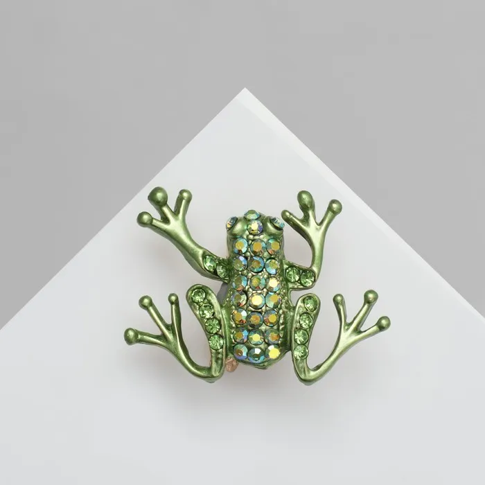 Маленькая, но притягательная брошь в виде волшебной лягушки — это яркий акцент в образе, который не оставит равнодушным ни одну женщину. Зелёный цвет в сочетании с золотистым металлом придаёт изделию благородство и изящество, а вставки из страз и эмали создают эффект живого мерцания.