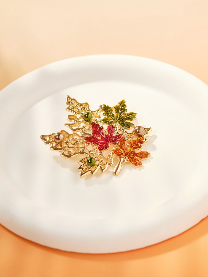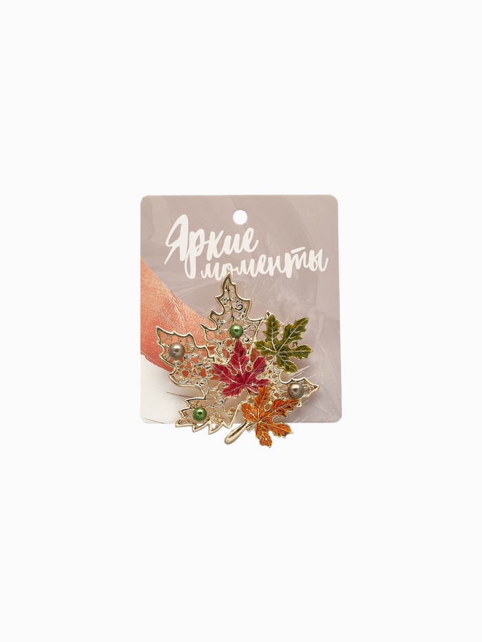 Брошь в виде осеннего кленового листа воплощает тепло и красоту золотой поры. Изящные линии и богатая палитра оттенков, выполненные с помощью эмали и пластика, создают живописный образ, который дополнит любой женский образ ярким и стильным акцентом.