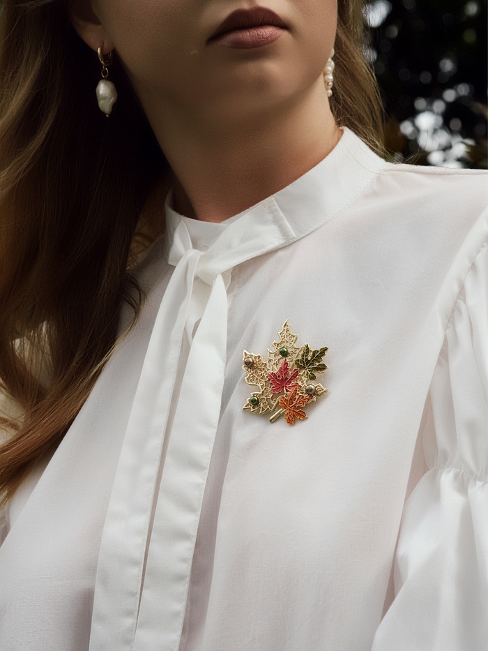 - Эффектная цветовая гамма: разноцветные эмалевые вставки передают естественную красоту осеннего листа.
