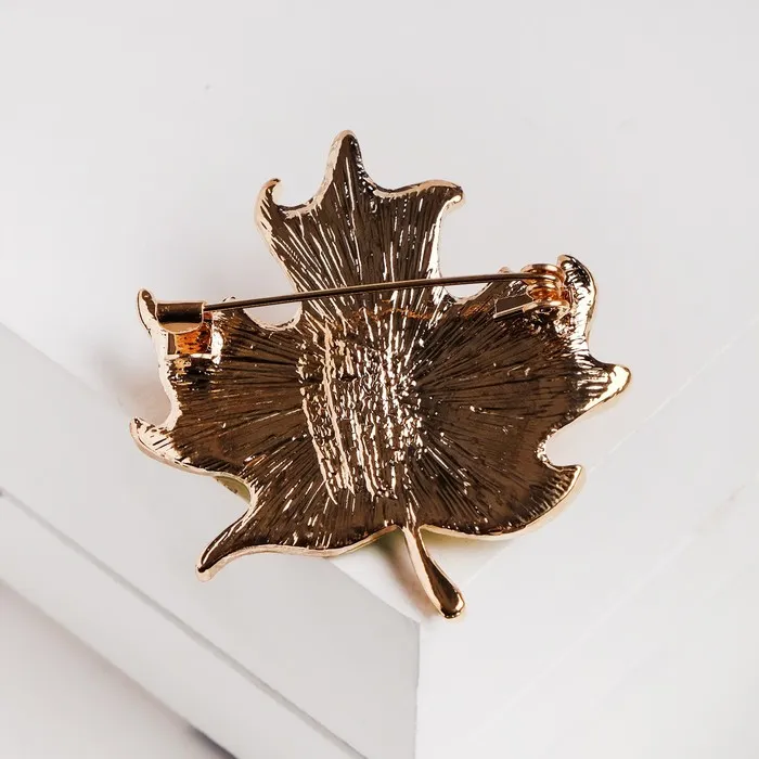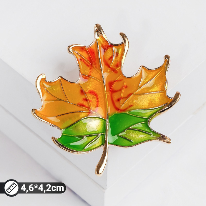 Брошь «Лист» кленовый, цвет оранжево-зелёный в золоте — Характеристики