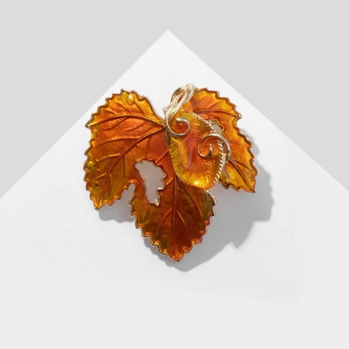 Брошь в виде изящного листа с завитками — это гармоничное сочетание природной красоты и утончённого дизайна. Яркие жёлто-оранжевые оттенки эмали на золотистой металлической основе создают теплый, солнечный акцент, который легко впишется в любой образ и подчеркнёт индивидуальность.