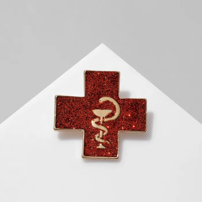 - Символичность: красный крест — международный знак помощи и заботы, что делает брошь значимым аксессуаром.