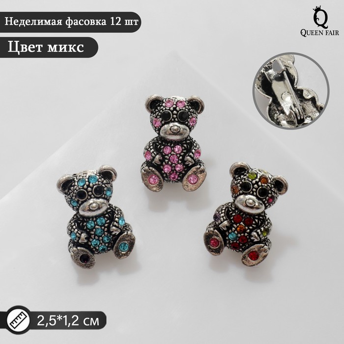Брошь «Мишка» игрушечный, МИКС, (неделимая фасовка 12 шт., цена за шт.) — Характеристики