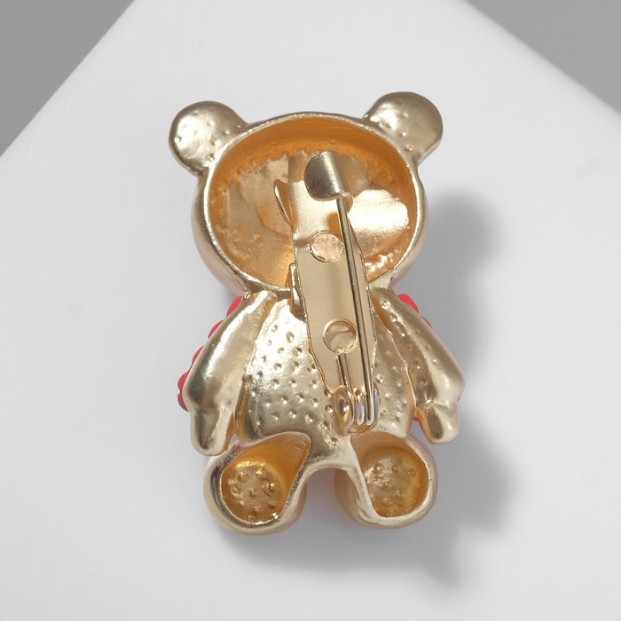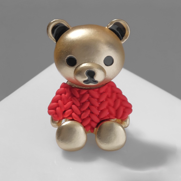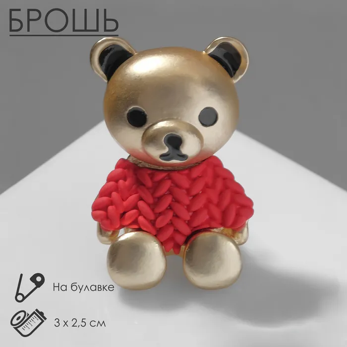 Брошь «Мишка» в свитере, цвет красный в матовом золоте — Характеристики