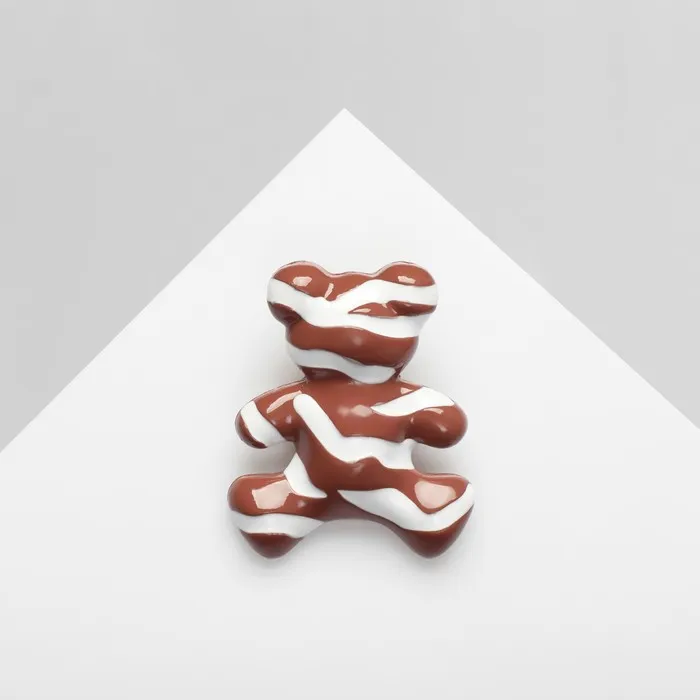Эта брошь в виде медвежонка с уникальным узором, напоминающим зебру, станет стильным и выразительным акцентом в вашем образе. Коричнево-белая гамма в сочетании с металлической основой придаёт изделию благородство и теплоту, подчёркивая индивидуальность и хороший вкус.